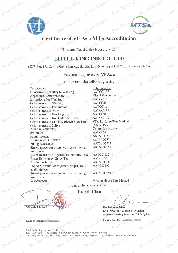 Little King receives the certification as system partner from Bluesign and GRS (Global Recycle Standard) certification since 2011 and 2012 respectively. Both demonstrate our efforts proved in the area of environmental sustainability.