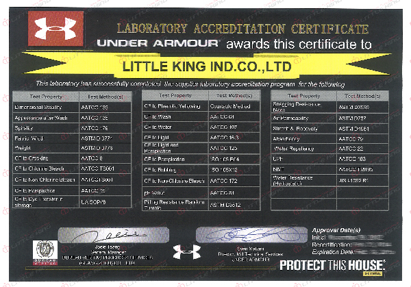 The awareness of textile quality requirement increased significantly among the global consumers and the dynamic market growth. Quality compliance is thought to be more precise in detail than ever. Little King deems that quality design and continuous improvement as substantial investment in order to strengthen our key competencies of product and service. This brings to providing right first time and every time quality products through continuous improvements of process. Our advanced Quality Inspection System and Laboratory are in place with range of expertise and facilities available for major test properties.
